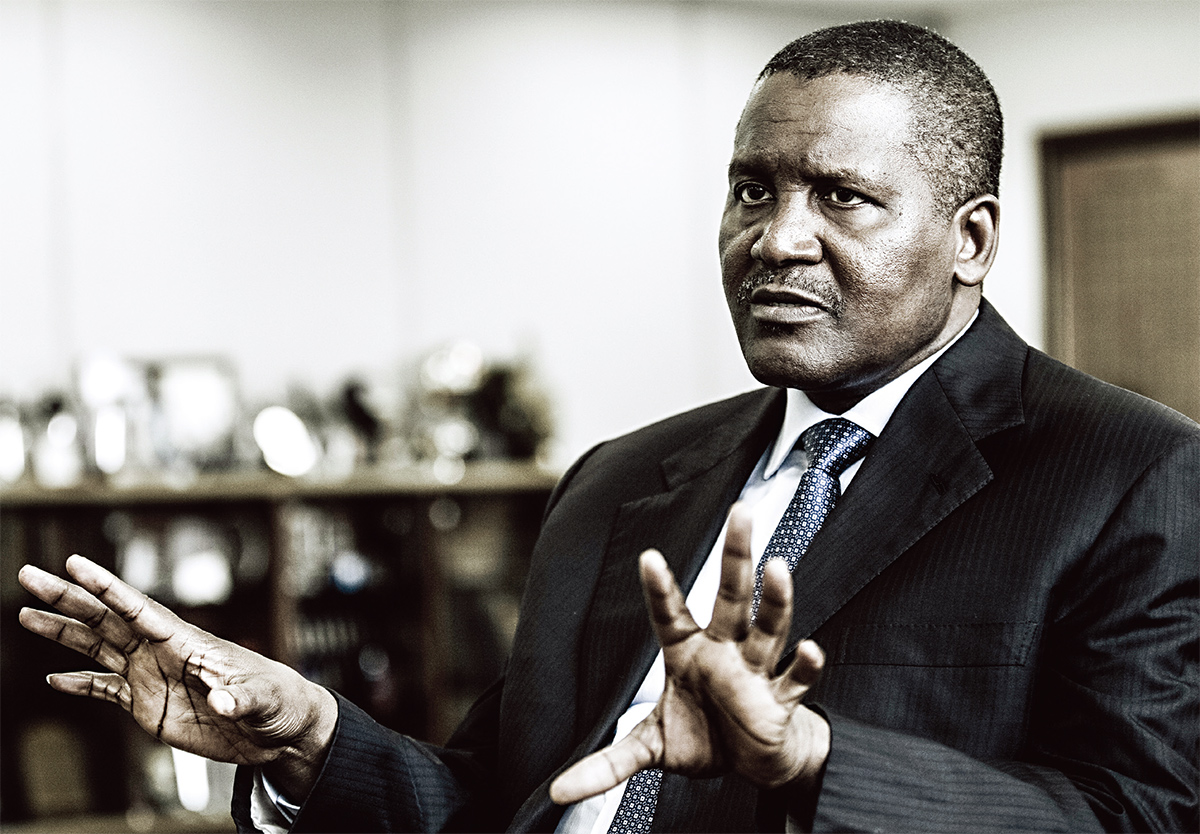 취재팀과 함께 저택에 들어서자 집사가 응접실로 안내했다. 3층짜리 요새는 에어컨에서 뿜어져 나오는 강풍으로 32℃가 넘는 바깥의 열기로부터 완벽히 보호받고 있었다. (전기는 자체 보유한 디젤 발전기로 공급해서 걸핏하면 단전되는 걸로 유명한 나이지리아 배전망으로부터도 보호받고 있다.) 둥근 얼굴에 단정하게 정리한 회색 콧수염을 기른 단고테가 카키색 바지와 편해 보이는 푸른색 와이셔츠를 입고 위층 계단에 모습을 보였다. 낮은 목소리로 웅얼거리며 이야기하는 단고테는 통상적 이미지의 거물급 기업인은 아니었다.