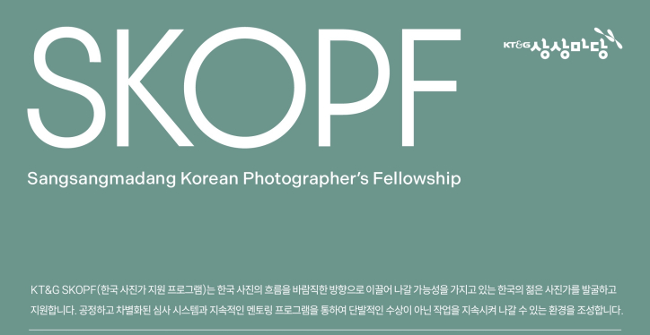 'KT&G SKOPF'는 2008년부터 신진 사진가 발굴 및 양성을 위해 운영해 온 예술가 지원 프로그램이다. 현재까지 총 54명의 작가를 배출했다.