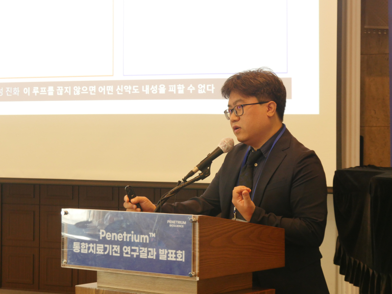 페니트리움바이오는 16일 한국프레스센터 20층 내셔널프레스클럽에서 열린 신약 후보물질 ‘페니트리움’(Penetrium) 통합치료기전 연구발표회에서 페니트리움이 암세포를 보호하는 ‘토양’(Soil) 전체를 정상화하는 '범용적 환경 정상화 기전'을 갖고 있음을 과학적으로 입증했다고 밝혔다. 페니트리움은 씨앤팜의 AI(인공지능) 신약개발팀이 도출한 신약 후보물질이다.